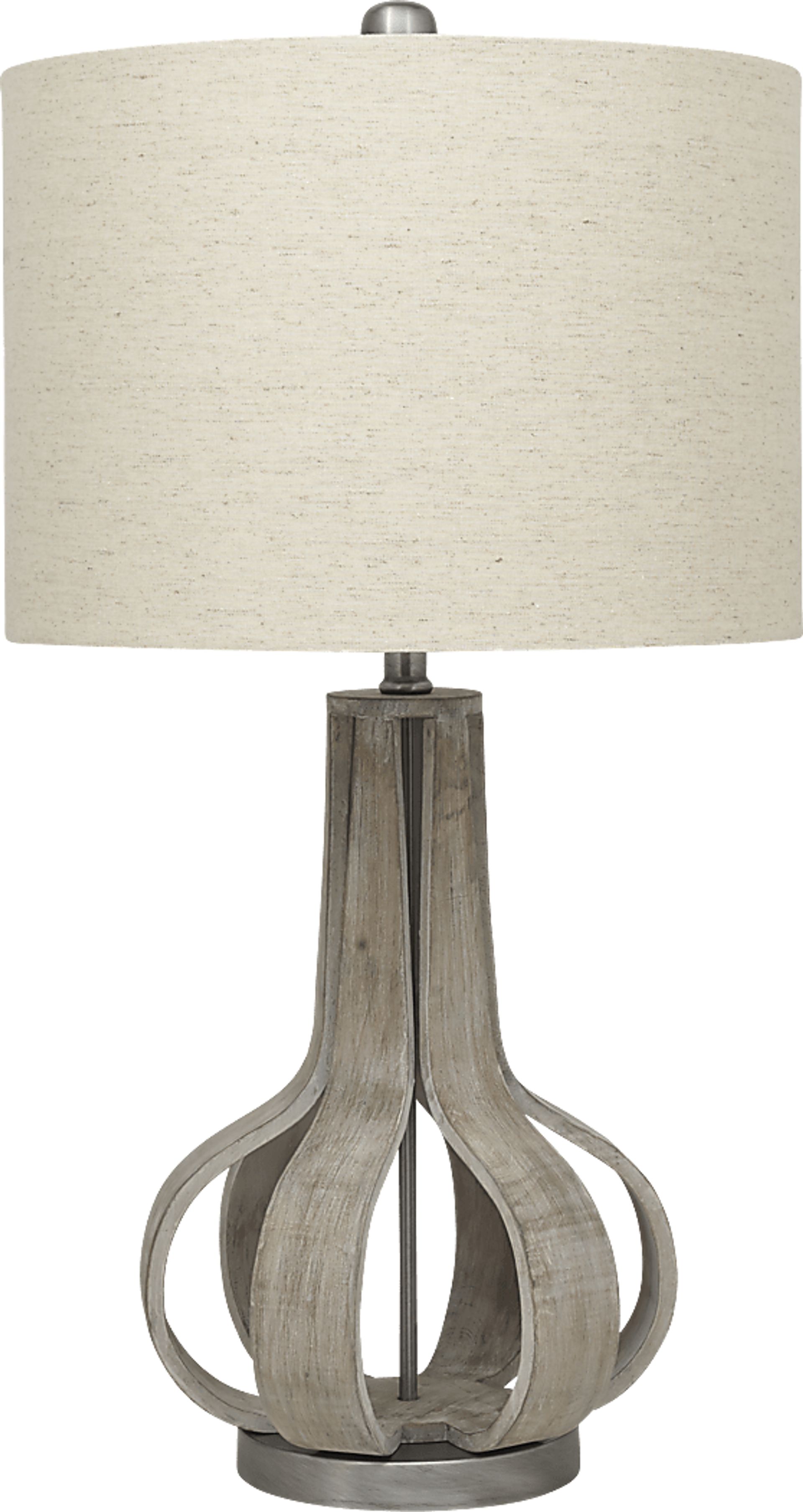 Featuring a classic drum shade atop a striking and rustic split wood base, the Beachwood Bay table lamp is an ideal choice to illuminate your space. It features a 150 watt bulb capacity and a three-way switch to ensure just the right amount of light.