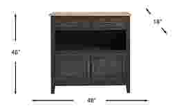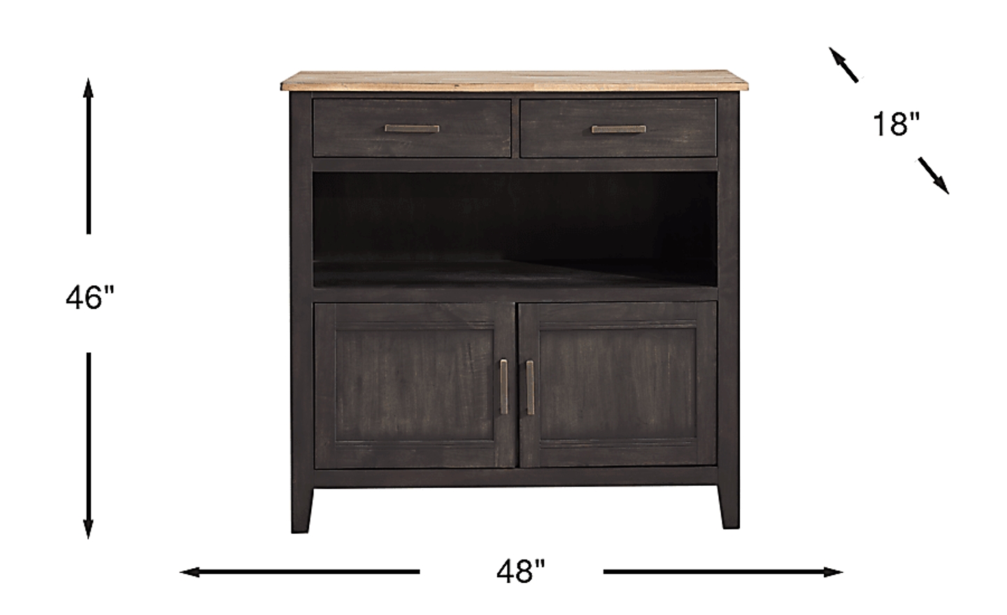 From home cooking to carryout to carrying on with friends and guests, the effortlessly casual Beacon Street sideboard delivers outstanding style for mealtime. Crafted from wood solids in a lacquered, two-tone brown finish, this sideboard features ample storage with two top drawers, a spacious single center cubby and a hidden shelf behind a pair of doors. Hardware finished in antique bronze provides the perfect final touch.