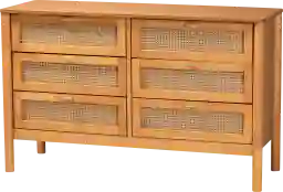 Bring an ambiance of robust serenity to your bedside with the lovely Beargrass brown dresser. This piece is crafted from sturdy wood. Six drawers provide ample storage space for clothes and linens while reserving the tabletop as a fantastic display area. The Beargrass features woven distressed-finished rattan drawer fronts for an added touch of classic elegance. Rounded legs lend a smooth silhouette, making the Beargrass a gorgeous bedroom fixture. Customer assembly is required.