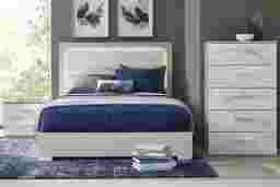 With a grace and style perfectly at home in a lavish penthouse or your own stylish suite, the Beatrice bed transforms the everyday mundane into the uniquely marvelous. This contemporary stunner features a headboard complete with gray marble finish highlighted by high gloss lacquer. Ambient LED lighting is the crowning touch, providing the glow to accompany soft, intimate whispers. Featuring a gray marble finish, the nightstand has two spacious drawers to hold your nighttime necessities while its broad top is highlighted by high gloss gray lacquer and sports plenty of room for lamps, chargers, and other nightly must-haves. Echoing the construction of the nightstand, the chest features five drawers that are each equipped with undermounted drawer glides with levelers to provide ample, durable space for your garments. Mattress and foundation (if required) sold separately.