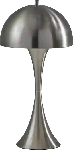 Introducing the Beaubien Estates Silver Lamp, a modern classic designed to elevate your home lighting experience. With its sleek brushed steel finish, this lamp exudes contemporary elegance while offering versatile functionality. The metal dome-shaped shade casts a soft, diffused light, perfect for creating a cozy ambiance in any room. Standing at 19.5 inches tall, it features a tapered hourglass-shaped base that adds a touch of sophistication to your decor. This lamp offers convenience and ease of use for your everyday lighting needs. Partial assembly may be required.