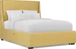 You'll sleep like a log and wake up fresh as a daisy in the Beaufoy upholstered bed. Upholstered in plush yellow fabric, this piece's allover traditional appeal is highlighted by a stunning wingback headboard. Convenience is always close at hand with USB ports in the headboard that make it easy to keep your devices charged. Storage drawers in the footboard and side rails can accommodate extra bed linens, clothes and more. Mattress and foundation (if required) sold separately.
