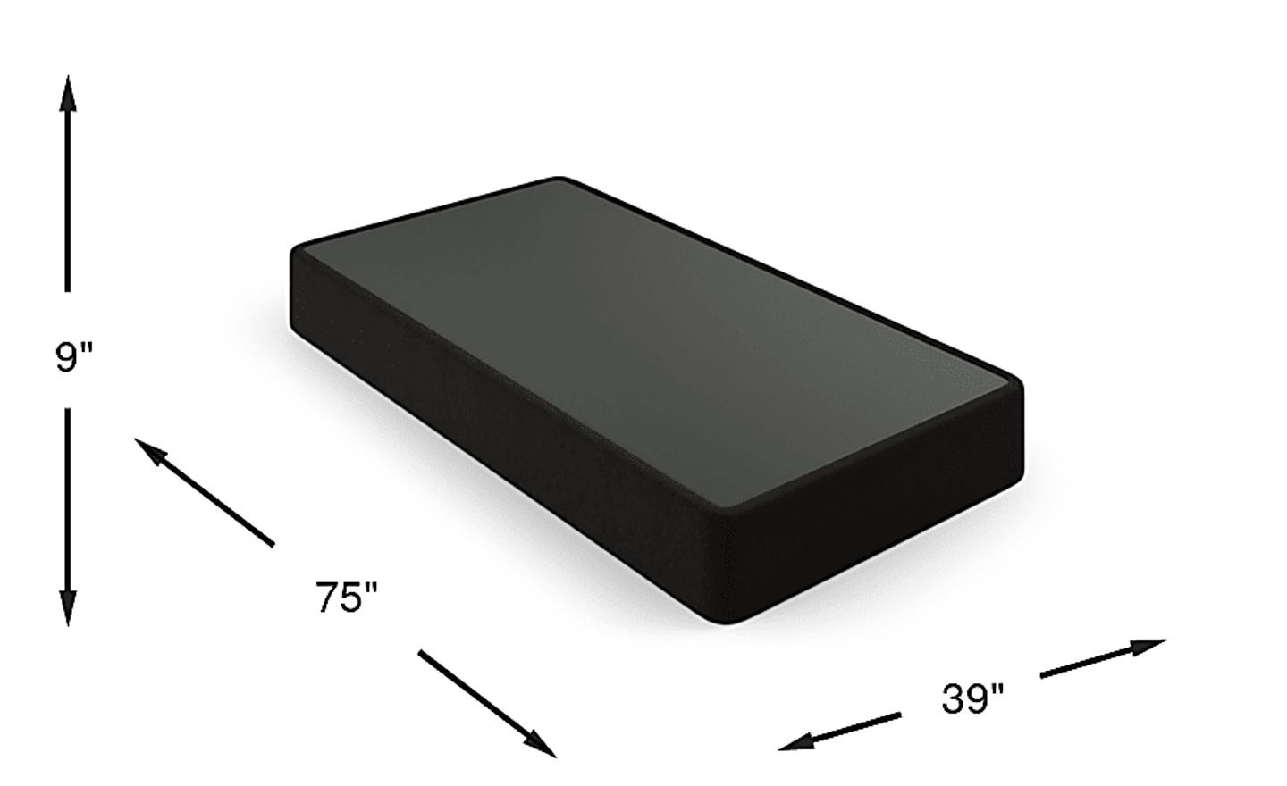This foundation is an excellent choice for compact living environments. The twin dimensions (75"l x 38"w) are specifically designed for smaller floor plans. Additionally, the 9-inch height creates significant clearance for under-bed storage—a crucial feature for maximizing space in urban apartments or dorm rooms. Its steel-reinforced construction also ensures it can withstand the rigors of frequent moves.
