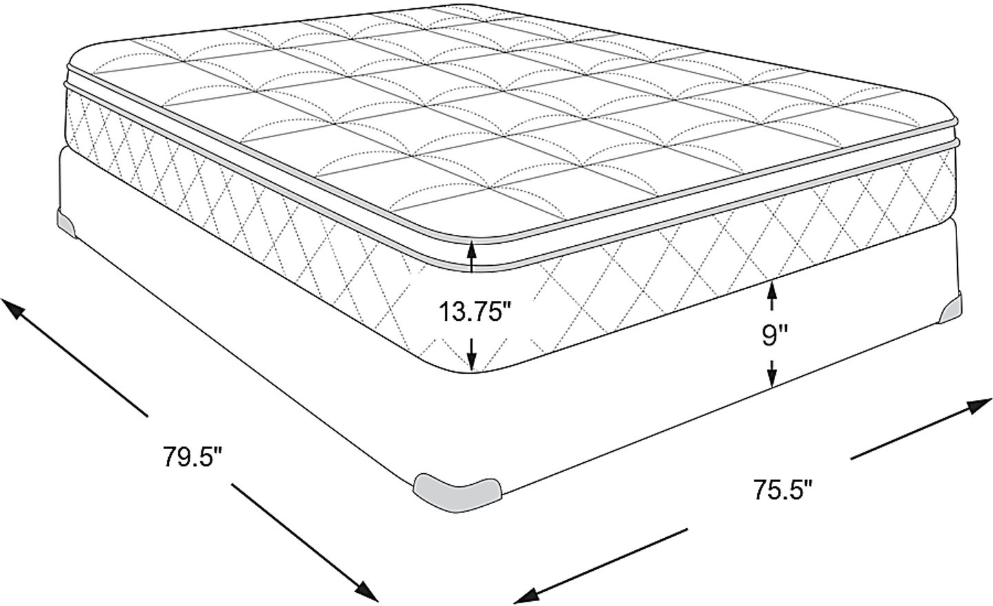 mattress: 79.5"l x 75.5"w x 13.75"h, foundation: 9"h