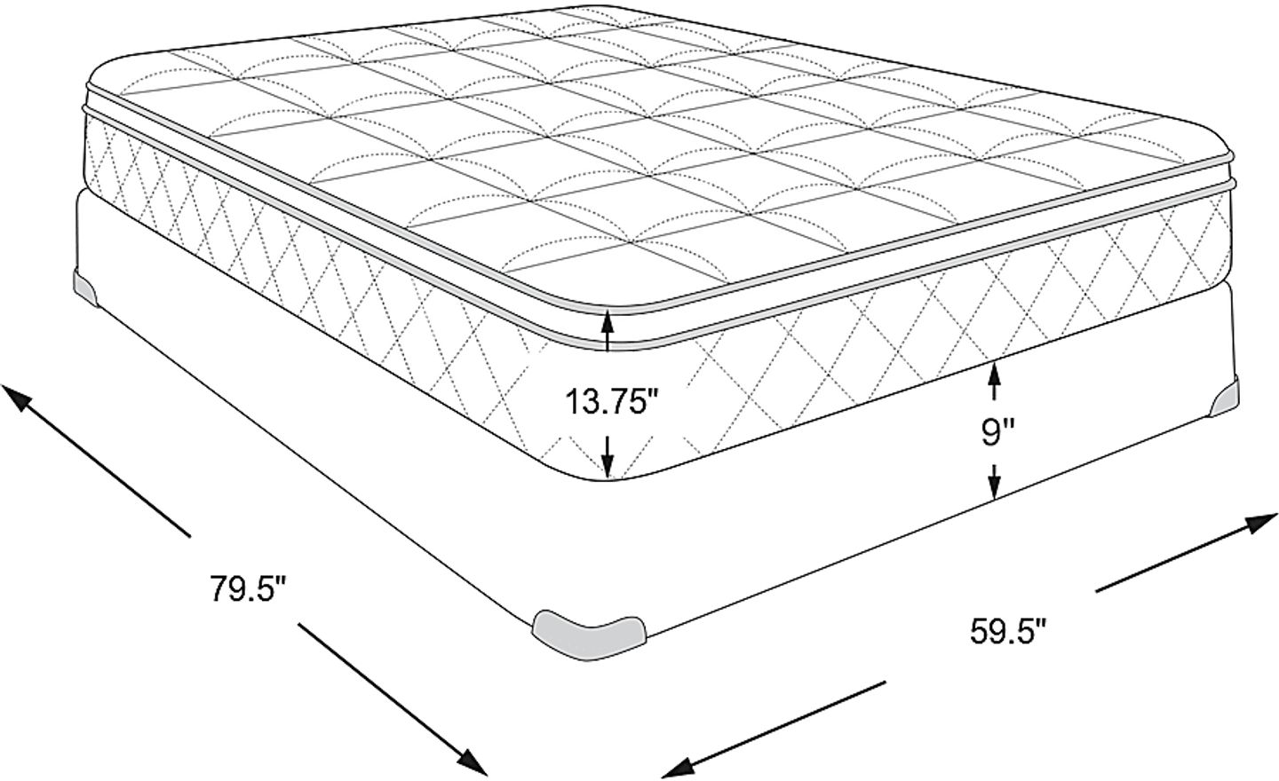 mattress: 79.5"l x 59.5"w x 13.75"h, foundation: 9"h
