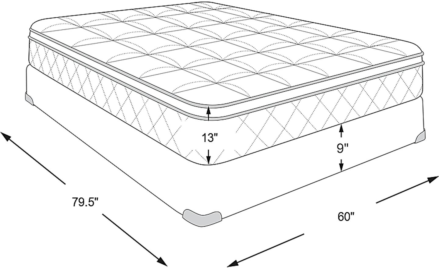 mattress: 79.5"l x 60"w x 13"h, foundation: 9"h