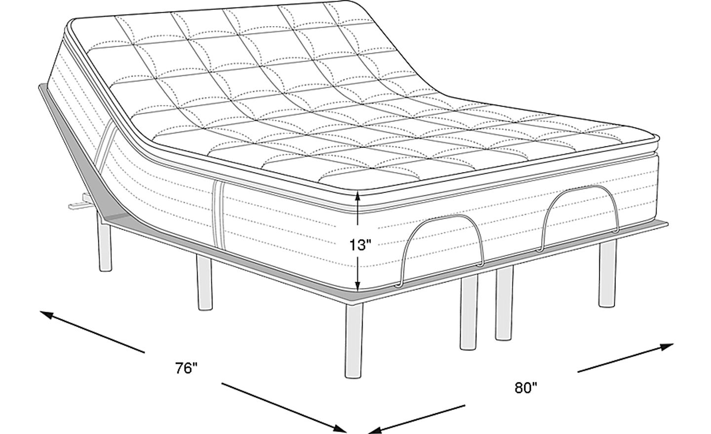 View Warranty76"l x 80"w x 13"h, adjustable base: 13"h