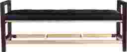 Sitting pretty. Comfy seating stuns in the Becka Bench. Button tufted, upholstered seat looks as good as it sits, topping off an eclectic mixed media composition. Black, dark sienna, and bright brass play well together, setting the stage for midcentury chic. Upgrade your seating arrangements with this adaptable bench, anywhere from the entry to the dining space. Customer assembly is required.