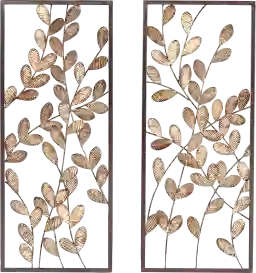 Your bare walls need options. Elevate your design skills with this two-piece Beckington wall decor set as an alternative to the traditional mirror or print. Reflective metal leaves in shades of gold brighten your home, while the bronze frame shows off a neutral palette. Use the panels in an eclectic vignette above a valet table in your entryway or add an unexpected organic touch to your dining room. Customer assembly is required.