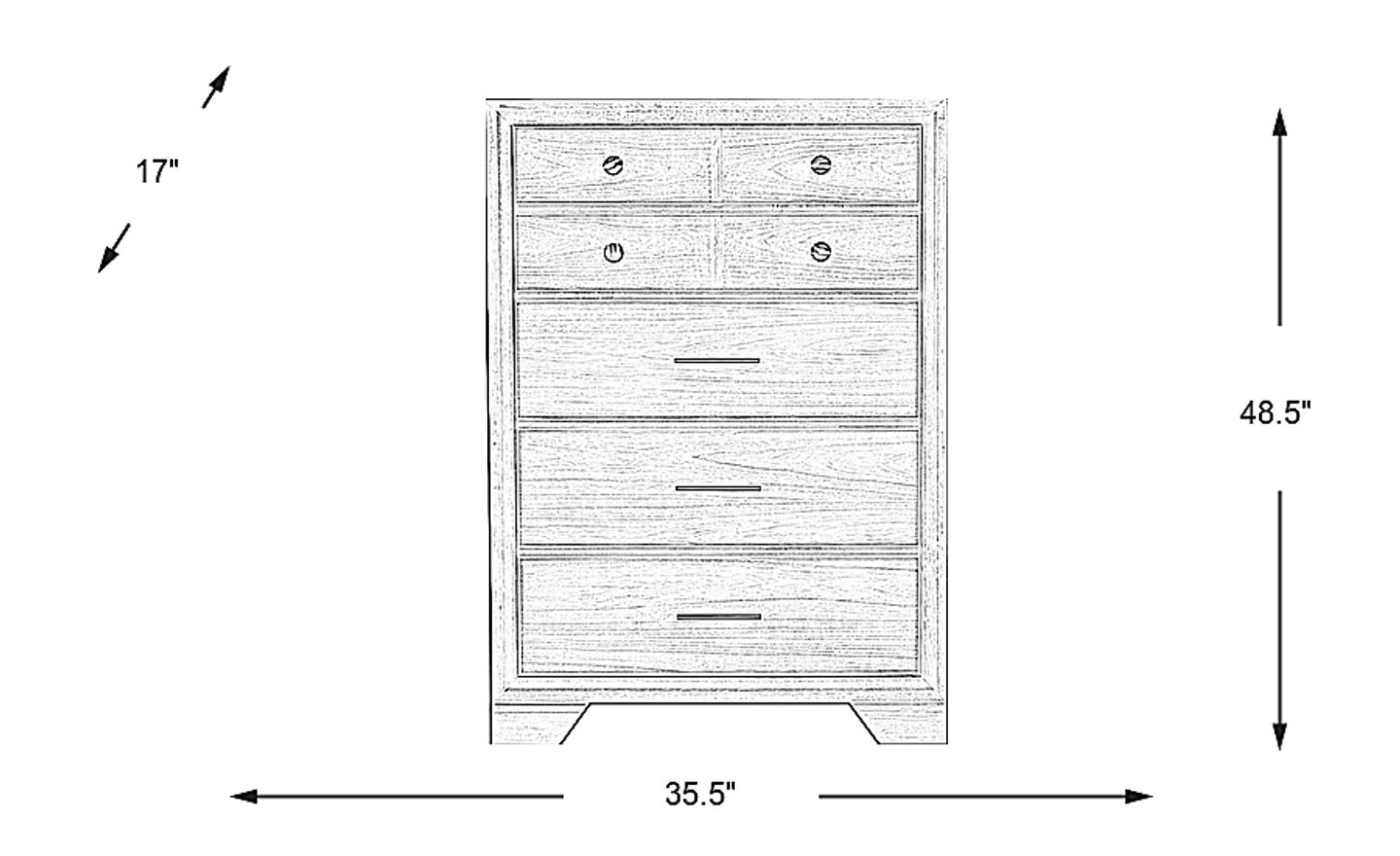 A chest of drawers, like this one, is designed for vertical storage, making it taller and narrower than a traditional dresser. At 48.5 inches tall and only 35.5 inches wide, it is an efficient solution for maximizing storage in bedrooms with limited floor area or for utilizing wall space between windows and doors where a wider dresser may not fit.