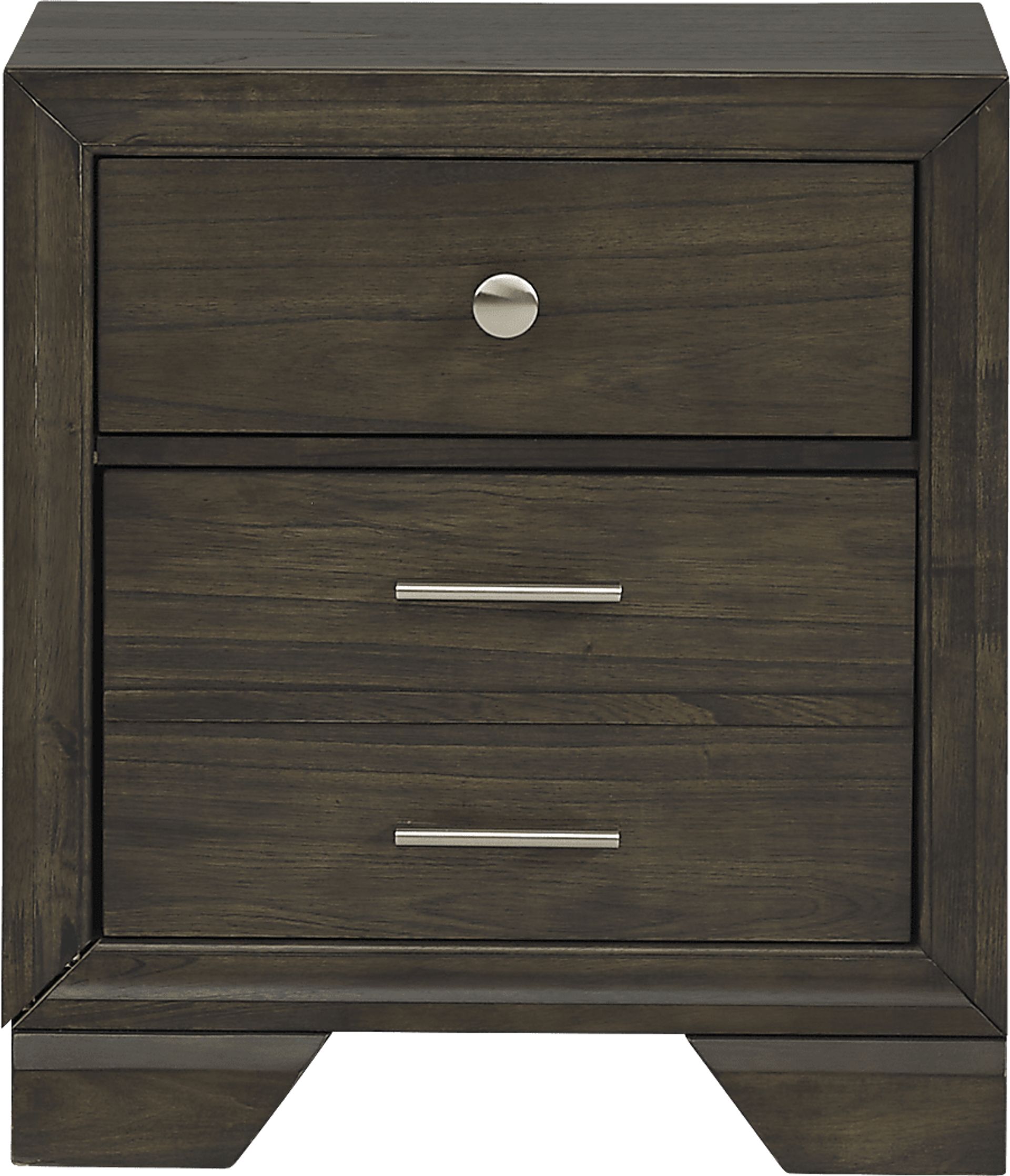Remarkably versatile, the Beckwood nightstand creates stylish bedside storage. Showcasing gorgeous wood grain detail, its dark gray finish allows it to blend in seamlessly with any room. The two drawers are adorned with bar and knob hardware in a sleek brushed nickel finish. Ball bearing drawer glides provide smooth movement for effortless accessibility.