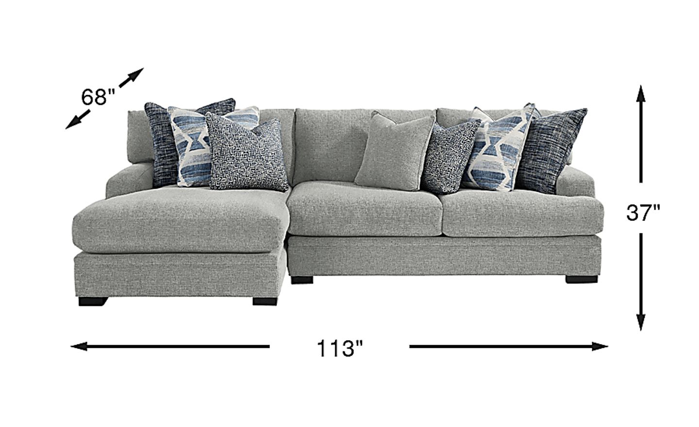 With a width of 113 inches and a depth of 68 inches at the chaise, this sectional is a substantial piece that anchors a room beautifully. Before delivery, we recommend measuring your intended space and using painter's tape to map out the footprint on the floor. To ensure a smooth delivery, also measure the width and height of all entryways, hallways, and tight corners. Because this is a two-piece configuration (RAF Loveseat and LAF Chaise), it is often easier to navigate through standard residential doorways than a single-piece sofa of the same size.