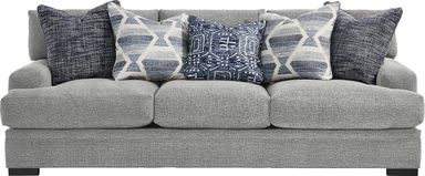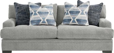While comfort is subjective, this Cindy Crawford Home set arrives ready for lounging with a curated assortment of patterned accent pillows in varying shades of blue. These pillows are designed to complement the contemporary gray upholstery and low-profile track arms, providing both lumbar support and a chic, finished look right out of the box.