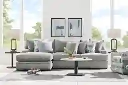 While comfort is subjective, this Cindy Crawford Home set arrives ready for lounging with a curated assortment of patterned accent pillows in varying shades of blue. These pillows are designed to complement the contemporary gray upholstery and low-profile track arms, providing both lumbar support and a chic, finished look right out of the box.