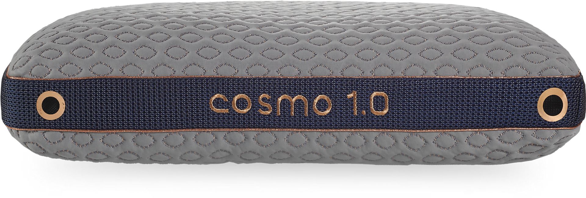 Showcasing a dual-chamber construction, BEDGEAR's Cosmo Performance pillow features soft on one side and firm on the other. This 1.0 size has been sleep tested as ideal for small to medium body types and back or side sleepers. The unique dual-chamber design includes a React foam crown and React foam blend which contours to your body, eliminating pillow bounce to improve deep sleep. Crafted with 10 air vents and patented Air-X mesh on all sides, it creates cross-ventilation for maximum breathability. Cosmo incorporates BEDGEAR's patented Ver-Tex instant-cooling cover to reduce sweat and heat buildup. Cosmo's zip-off removable and washable gray cover, boasting a marquee-diamond pattern with rose gold stitching, promotes a clean and healthy sleep environment.