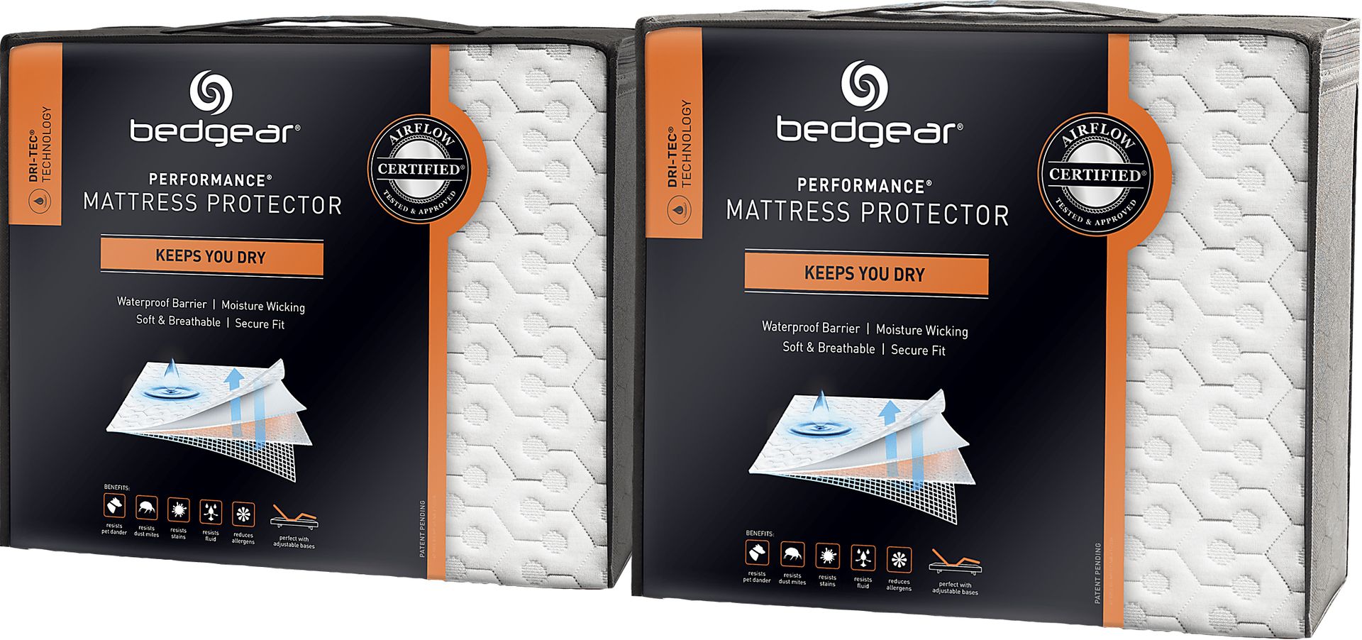 Featuring a unique channel-weave construction designed to facilitate airflow, the Dri-Tec performance mattress protector bundle from BEDGEAR wicks away moisture and dissipates heat for a drier, more comfortable night's sleep. A waterproof, invisible barrier completely protects your mattress without changing the feel. Engineered to enhance the body-conforming qualities of memory foam and latex mattresses, this flexible protector reacts to your motion, keeping you cool and comfortable even as you move during the night.