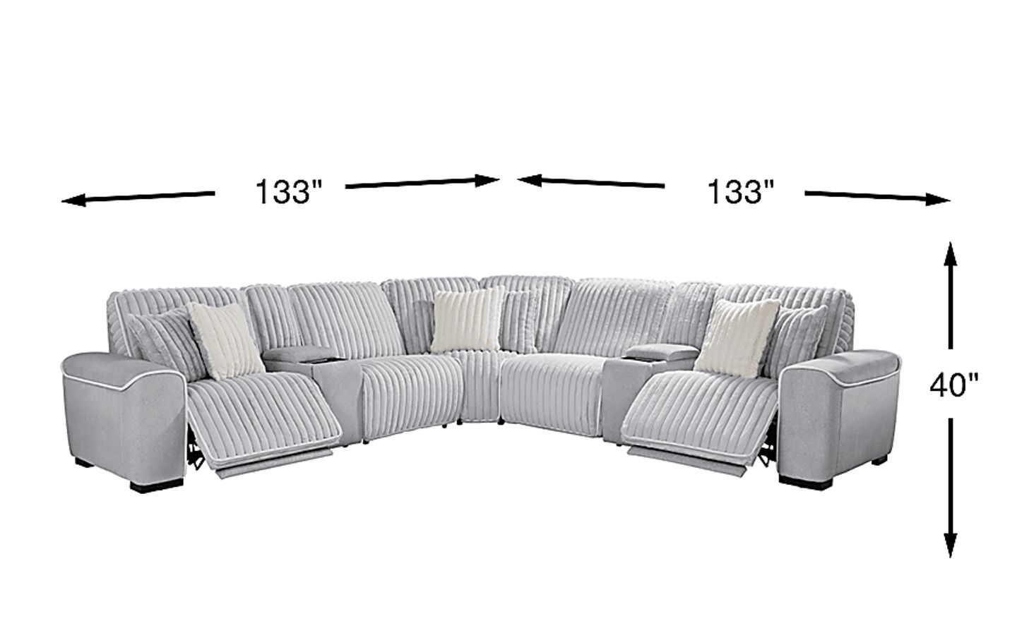 Contoured elegance gets a touch of cloud-like comfort with the indulgent Bedingfield sectional. This inviting gray piece is upholstered in an ultra soft oversized corduroy fabric on large rounded back and seat cushions. Thick welted seams add exaggerated lines to admire while relaxing with the dual power adjustable headrests and footrests. USB ports set into each control panel offer easy charging, and each console also features wireless charging, storage and hidden cupholders. Matching pillows are included for more of that irresistible color and texture. Upholstery: 100% Polyester. Cleaning Instructions: Use water based cleaning agents or foam.