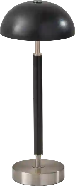 Introducing the Beechton Island Black Lamp, where modern design meets practicality. With its brushed steel and black wood finish, this lamp adds a touch of contemporary style to any room. The black wood dome shade complements the sleek finish, providing a sophisticated contrast. Standing at a height of 14.6 inches, it's the perfect addition to desks, nightstands, or side tables. Powered by a rechargeable LED, this lamp offers energy-efficient lighting without the hassle of cords. Portable and rechargeable, it provides versatile illumination wherever you go. Partial assembly may be required.