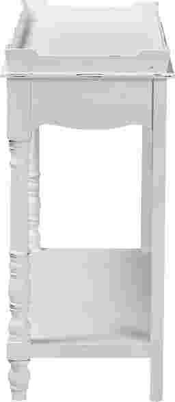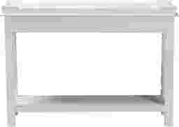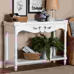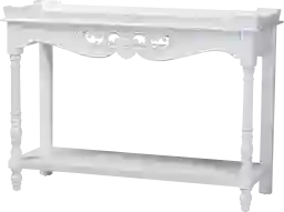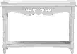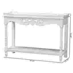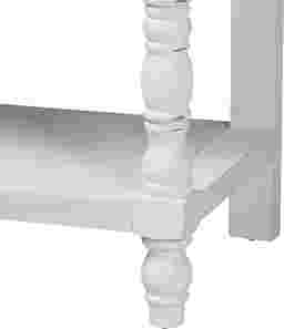 A quality of timeless charm fills any setting housing the beautiful Beedlemart white console table. This classic piece is crafted from sturdy wood. The wide tabletop creates an elegant display for household decor while the open shelf dexterously accommodates larger items. The Beedlemart requires assembly and features intricate moldings and turned detailing on the column legs that exhibit the skillful craftsmanship employed in creating the piece. Raised borders with weathered detailing lend a more distinguished look, making this console table a fantastic addition to any layout. Customer assembly is required.