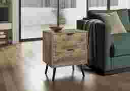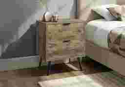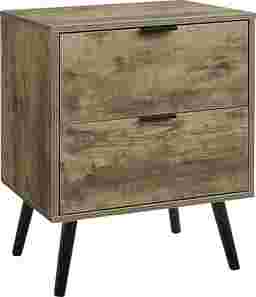 Transform your bedroom into a chic haven with the Beeworth light brown nightstand, designed to complement modern lifestyles with fashionable style and practicality. Crafted with durable light brown laminate on all sides, this contemporary nightstand showcases a beautiful wood-look finish that adds warmth and sophistication to any space. Equipped with two spacious storage drawers and accented with black metal handles, this nightstand is perfect for keeping your essentials neatly tucked away. The black solid wood legs ensure a sturdy and stable structure that supports your daily needs while maintaining a sleek profile. Durably designed with its space saving design, this nightstand is easy to assemble with the step by step illustrated instructions included. Customer assembly is required.
