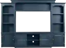 The Beidiman I blue wall unit is sure to transform your living space with its traditional moldings and clean lines. With plenty of room for storage and display, including adjustable shelves, this wall unit ensures that you can keep organized and adds an elegant touch to your home. Important features, such as the touch-operated LED light in the bridge and wire management in the main console area make this piece practical as well as beautiful. The TV area measures 57"W x15"D x 33"H, with an adjustable self, adding 2 additional inches of space. Accommodates up to a 65" TV. This is a unit that is sure to complete your space. Customer assembly is required.