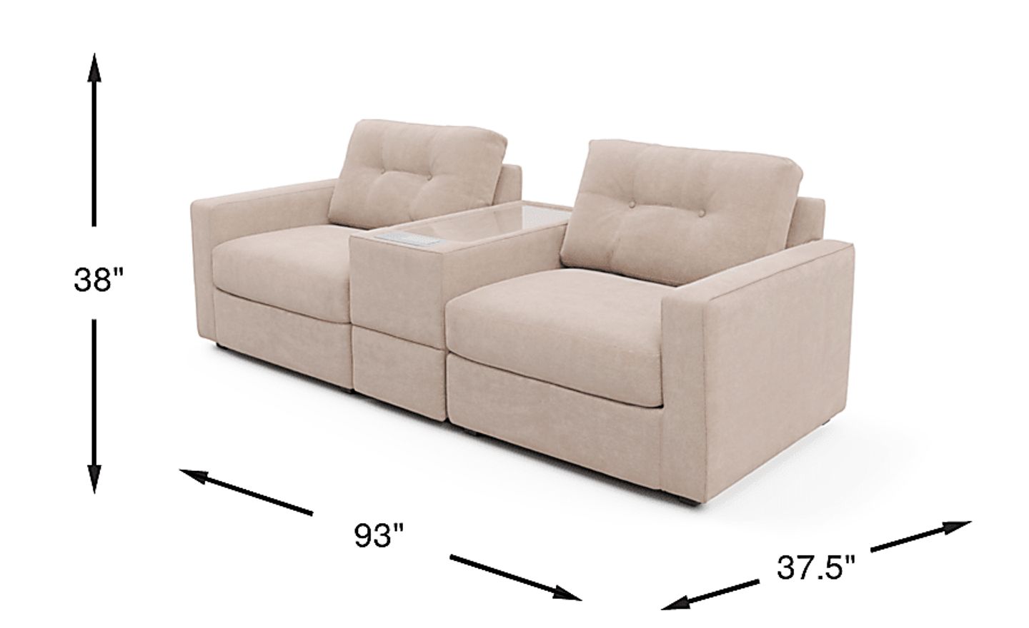 Discover the limitless possibilities of the Drew & Jonathan ModularOne, thoughtfully designed with comfort and flexibility in mind. This customizable seating solution features individual pieces that can be configured to any shape your room needs. Game days, movie nights, sleepovers, and everyday relaxation are all better when the seating arrangement you want is always right at your fingertips. Each individual piece is upholstered on all sides in our signature fabric, New Horizon. This soft, beige chenille includes Repreve yarn, made with recycled plastic bottles. The dual seating area has welted track arms, top-stitched seat cushions and button-tufted back cushions for an elegant silhouette. A media console provides hidden storage, a USB charging port, wireless charging, bluetooth-enabled speaker, and doubles as a side table with a sleek acrylic top. A matching pillow provides the perfect final touch. Includes LAF chair, console, and RAF chair. Visit a showroom to learn more about individual components and to work with a sales specialist to customize your own configuration today.