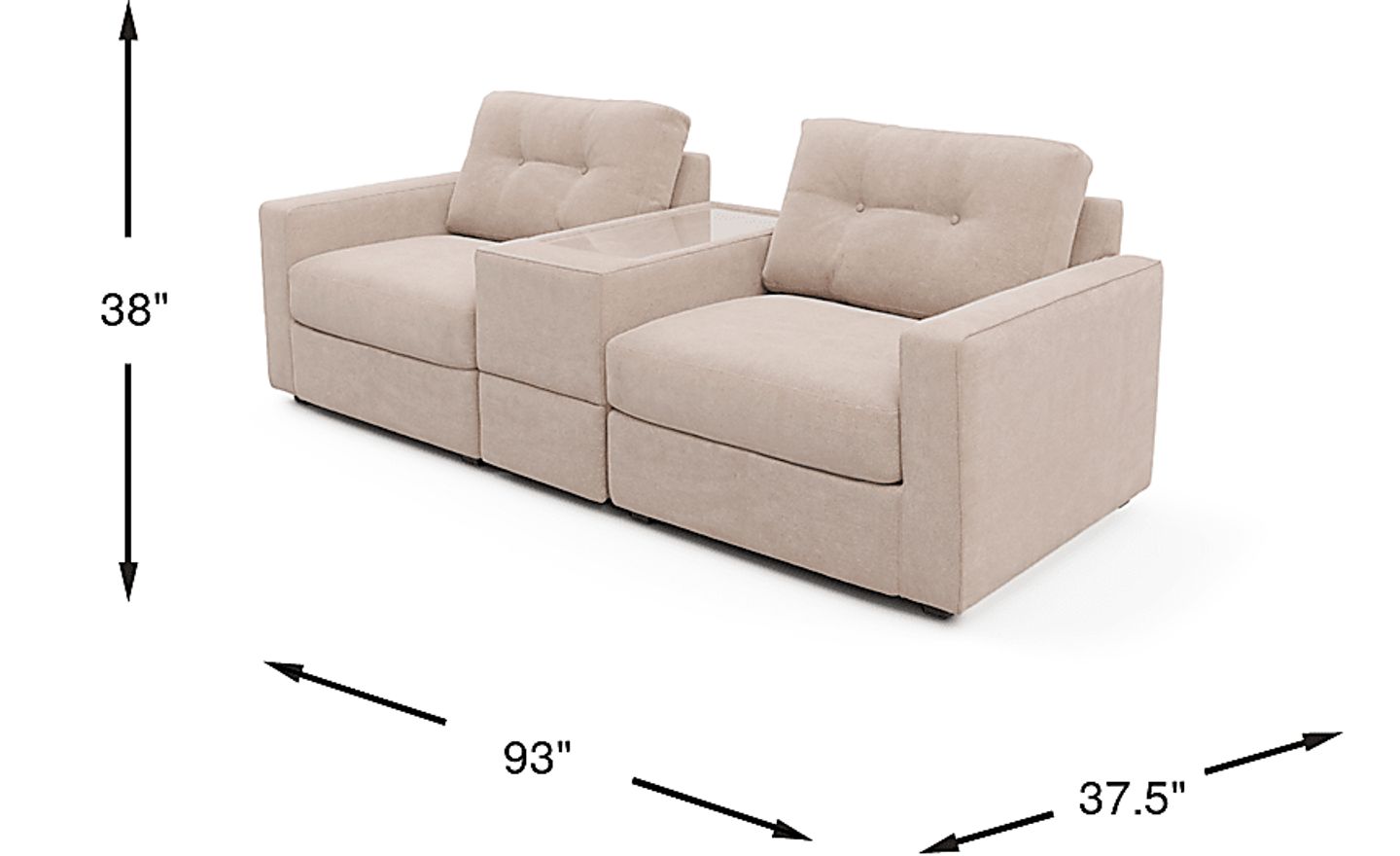 Discover the limitless possibilities of the Drew & Jonathan ModularOne, thoughtfully designed with comfort and flexibility in mind. This customizable seating solution features individual pieces that can be configured to any shape your room needs. Game days, movie nights, sleepovers, and everyday relaxation are all better when the seating arrangement you want is always right at your fingertips.Each individual piece is upholstered on all sides in our signature fabric, New Horizon. This soft, beige chenille includes Repreve yarn, made with recycled plastic bottles. The dual seating area has welted track arms, top-stitched seat cushions and button-tufted back cushions for an elegant silhouette. A center console provides hidden storage and doubles as a side table with a sleek acrylic top. A matching pillow provides the perfect final touch. Includes LAF chair, console, & RAF chair. Visit a showroom to learn more about individual components and to work with a sales specialist to customize your own configuration today.