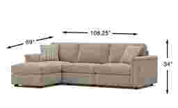 This sectional is upholstered in 100% polyester chenille, a material selected for its blend of luxurious softness and long-term resilience. Polyester is a synthetic fiber highly regarded for its durability and inherent resistance to stretching and shrinking. For pet owners, the tight weave of this chenille is a significant benefit, as it is less prone to snagging from claws compared to looser fabrics. Additionally, the light beige tone helps a room feel more open and airy, which can brighten high-traffic living spaces.