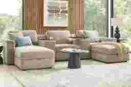 This sectional is designed for the modern, connected home. It includes two media consoles that function as high-tech hubs, featuring swivel tables for laptops or snacks and hidden storage for keeping remotes and accessories organized. Additionally, integrated USB-A and USB-C charging ports allow you to keep your devices powered up without ever having to leave your seat.