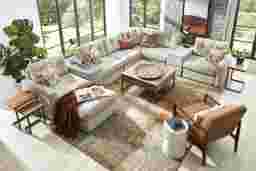 Discover the limitless possibilities of the Drew & Jonathan ModularOne, thoughtfully designed with comfort and flexibility in mind. This customizable seating solution features individual pieces that can be configured to any shape your room needs - the seating arrangement you want is always right at your fingertips. Each individual piece is upholstered on all sides in our signature fabric, New Horizon. This soft, beige chenille includes Repreve yarn, made with recycled plastic bottles. The seating area has welted track arms, top-stitched seat cushions and button-tufted back cushions for an elegant silhouette. Seats with power reclining functionality allow for easy adjustment of the footrest, providing the ultimate in personalized comfort. Two media consoles provide hidden storage, USB charging ports, wireless charging, bluetooth-enabled speakers, and double as side tables with sleek acrylic tops. Includes LAF chaise, 2 media consoles, armless power recliner, 2 armless chairs, wedge, and RAF power recliner. Upholstery: 100% Polyester.