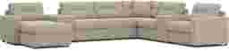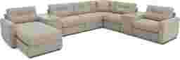 Discover the limitless possibilities of the Drew & Jonathan ModularOne, thoughtfully designed with comfort and flexibility in mind. This customizable seating solution features individual pieces that can be configured to any shape your room needs - the seating arrangement you want is always right at your fingertips. Each individual piece is upholstered on all sides in our signature fabric, New Horizon. This soft, beige chenille includes Repreve yarn, made with recycled plastic bottles. The seating area has welted track arms, top-stitched seat cushions and button-tufted back cushions for an elegant silhouette. Seats with power reclining functionality allow for easy adjustment of the footrest, providing the ultimate in personalized comfort. A media console provides hidden storage and doubles as a side table with a sleek acrylic top. Includes LAF chaise, 2 consoles, armless power recliner, 2 armless chairs, wedge, and RAF power reclining seat Upholstery: 100% Polyester.