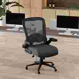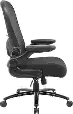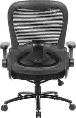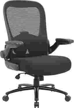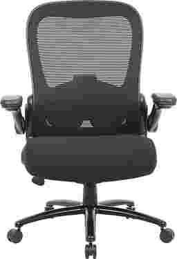Our heavy duty Bekoe flip arm mesh chair makes the perfect companion to any office, board room, or study. Its 400 pound weight capacity ensures a comfortable sitting experience with a broad range of body types. It's seat is elegantly upholstered in black fabric and features high density foam and spring back construction for added comfort. The mesh back features adjustable lumbar and allows the cushion to breath with no moisture build up. It has height adjustable flip up arms. The chair features a pneumatic gas lift seat height adjustment, a heavy duty spring tilt mechanism, and tilt tension control. All of this sits atop a large 27 steel base with five large heavy duty casters. Customer assembly is required.