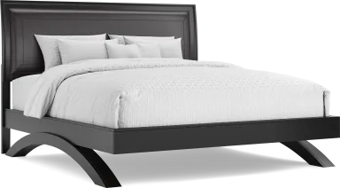 Despite its bold black finish, the lattice-style headboard is an excellent choice for tighter spaces because it allows light and sightlines to pass through. This "open-air" design prevents the headboard from feeling like a solid wall, while the tapered legs lift the frame off the floor to help the room feel more spacious and less grounded.
