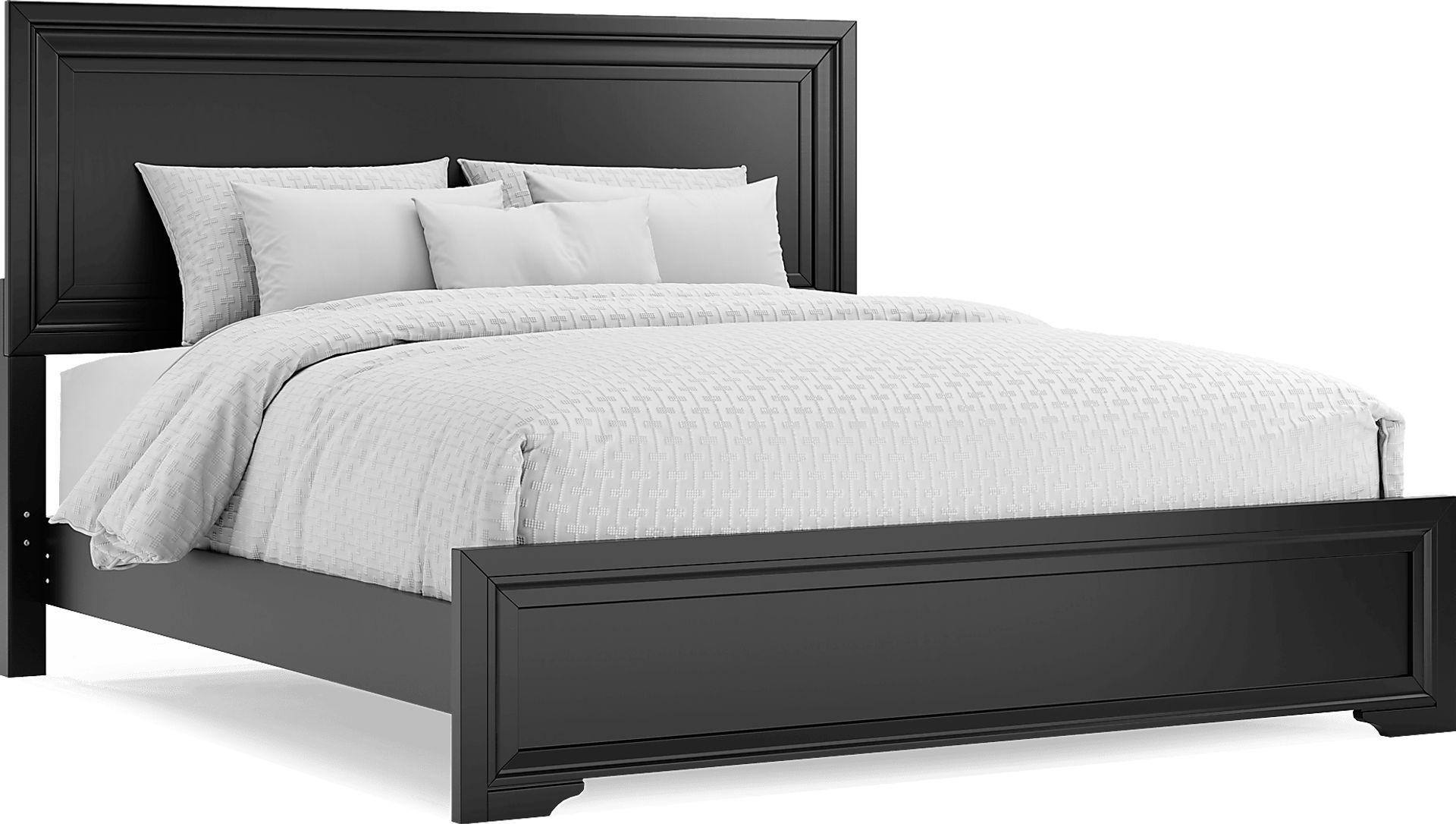 The sleek Belcourt panel bed will be welcomed by those who appreciate clean lines and a contemporary approach to style. Picture frame molding on the head and footboard offer just enough visual interest while maintaining an appealing sense of simplicity. The bed is made using wood solids and birch veneers and completed with a classic black finish. Mattress and foundation (if required) sold separately. Bed shown is queen size.