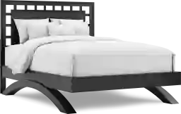 The sleek Belcourt bed is perfect for those who appreciate contemporary design. Rich in visual appeal, it has a lattice style headboard and dramatic arched base for a clean, open look. The design is completed with a rich black finish. This bed requires a mattress only, no boxspring is needed. Mattress and foundation (if required) sold separately. Bed board required for mattress support.