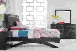 Wake up your bedroom with the sleek Belcourt bed. This stylish platform bed is supported by an arched base and completed with a beautiful black finish. The sleigh headboard is upholstered in black fabric and features decorative stitching detail. This bed requires a mattress only, no boxspring is needed. Mattress and foundation (if required) sold separately. Bed board required for mattress support.