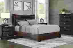 Belcourt Black 5 Pc Bedroom With Genoa Brown Queen Upholstered Bed