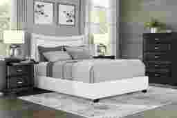 Belcourt Black 5 Pc Bedroom With Genoa Ivory King Upholstered Bed