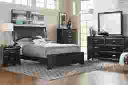 Belcourt Black 5 Pc King Upholstered Sleigh Bedroom
