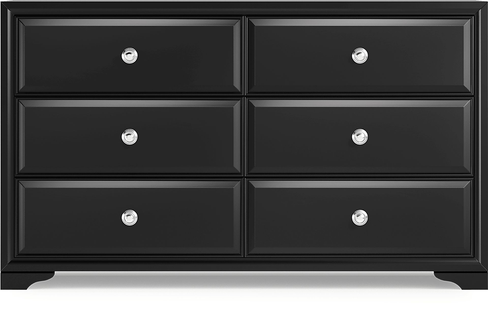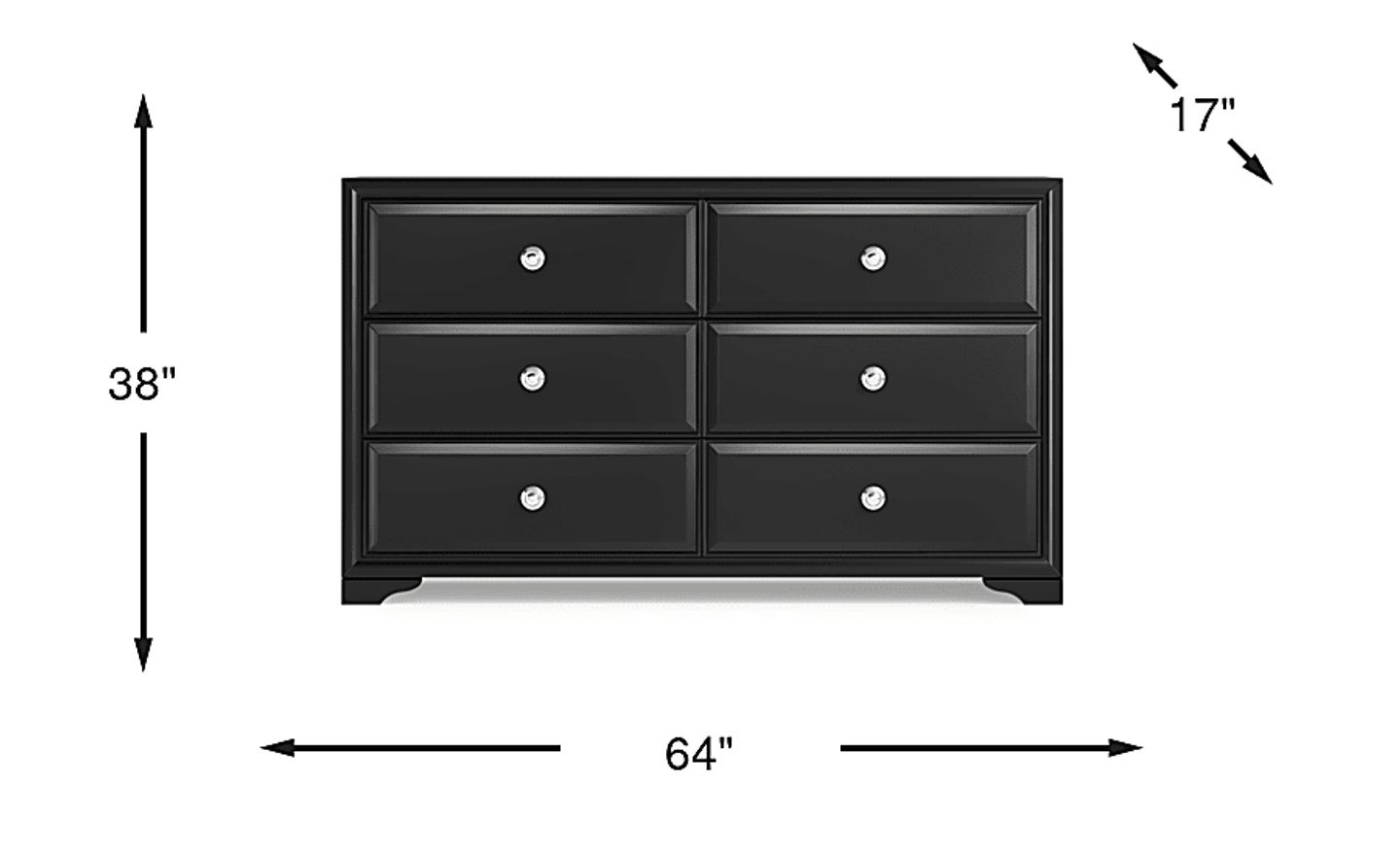 For simplicity with sleek style - and plenty of storage - choose the Belcourt dresser. Contemporary styling is achieved with clean lines and straightforward design. Six roomy drawers are constructed using French and English dovetailing for strength and stability. The dresser's black finish is contrasted by brushed chrome hardware in your choice of round or bar shaped pulls (both are included).