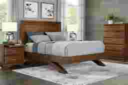 Clean lines and contemporary flair define the modern elegance of the Belcourt panel arch bed. Crafted of wood solids and birch veneers in a rich brown cherry finish, this sleek bed features a dramatic arched base with a corresponding panel headboard. Mattress and foundation (if required) sold separately.