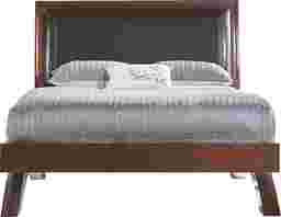 Wake up your bedroom with the sleek Belcourt bed. This stylish platform bed is supported by an arched base and completed with a beautiful cherry finish. The sleigh headboard is upholstered in dark brown fabric and features decorative stitching detail. This bed requires a mattress only, no boxspring is needed. Mattress and foundation (if required) sold separately. Bed shown is queen size. Bed board required for mattress support.