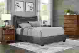 Belcourt Brown Cherry Finish 5 Pc Bedroom With Genoa Gray Queen Upholstered Bed