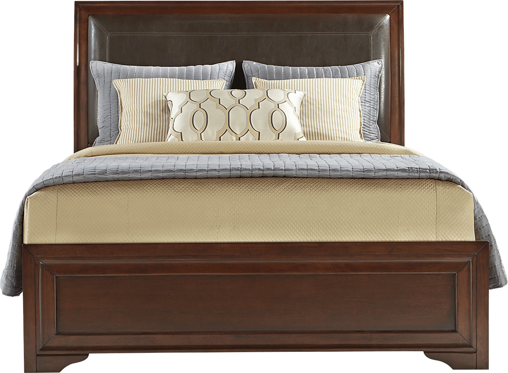 Belcourt Brown Cherry Finish 3 Pc Queen Upholstered Sleigh Bed