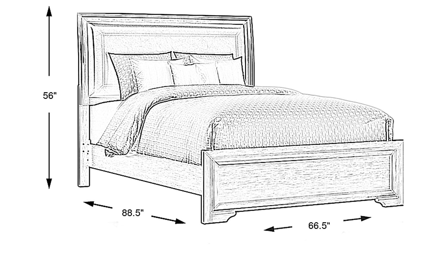 This queen-sized bed measures 88.5"l x 66.5"w x 56"h. While traditional sleigh beds can sometimes feel bulky, this model features a streamlined silhouette and a low footboard with picture frame molding, which helps maintain sightlines across the room. The tapered legs elevate the frame, creating a sense of open floor space that is ideal for making smaller rooms feel less crowded.