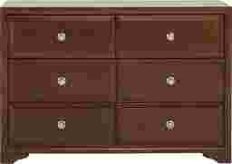 For simplicity with sleek style - and plenty of storage - choose the Belcourt dresser. Contemporary styling is achieved with clean lines and straightforward design. Six roomy drawers are constructed using French and English dovetailing for strength and stability. Top drawers are lined in felt to buffer delicate items such as jewelry and other small accessories. The dresser's cherry finish is contrasted by brushed chrome hardware in your choice of round or bar shaped pulls (both are included).