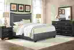 Strikingly stylish with a handsome contemporary design, the Genoa bed is the perfect focal point for your bedroom. Upholstered in gray UltraHyde fabric, this stylish bed features a reverse arched headboard accented with chic silver finished nailhead trim. Mattress and foundation (if required) sold separately. Bed shown is queen size. Bed board required for mattress support.