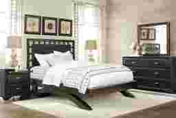 Includes:black 3 pc king lattice arch bed • brown cherry dresser • brown cherry mirror • white nightstand (2)