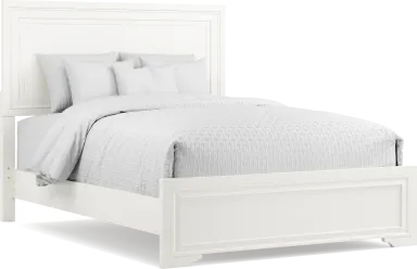The sleek Belcourt panel bed will be welcomed by those who appreciate clean lines and a contemporary approach to style. Picture frame molding on the head and footboard offer just enough visual interest while maintaining an appealing sense of simplicity. The bed is completed with a fresh white finish. Mattress and foundation (if required) sold separately.