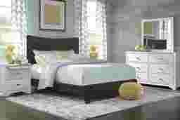 Belcourt White 7 Pc Bedroom With Genoa Brown Queen Upholstered Bed